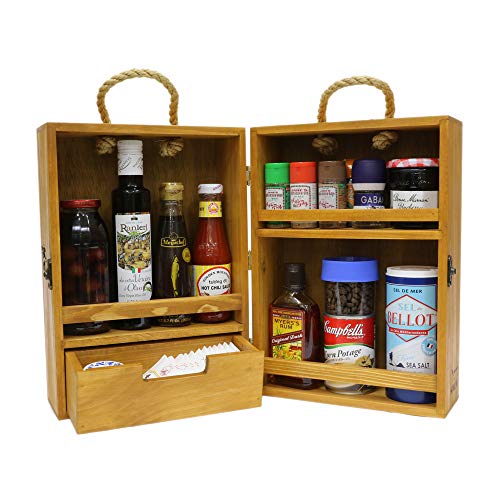 こちらもたくさんの調味料を持ち運びたいという方に人気のスパイスボックスです。木製タイプなのでおしゃれですし、大量の調味料がコンパクトに収納できるようになっています。