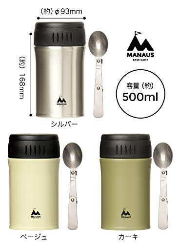 Amazon限定のブランドメーカー・MANAUS(マナウス)のこちらのスープジャーは大容量な500MLサイズで、バックの中にも入れやすいスリムサイズのスープジャーです。