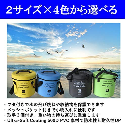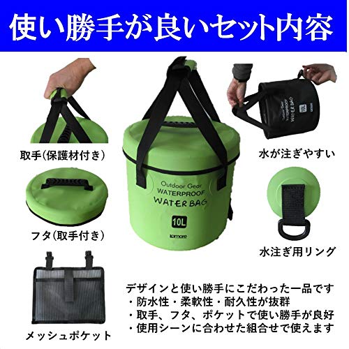 Lamoreの折りたたみ防水バッグは、冬でも硬化しにくい柔らかい素材で作られているバケツで、アウトドアで様々な用途で使える人気商品です。グリーン・ブルー・イエロー・ブラックの全4色あるので、自分の好きな色から選んで使うことができます。お値段もリーズナブルでコスパが良いという声も多い人気商品です。