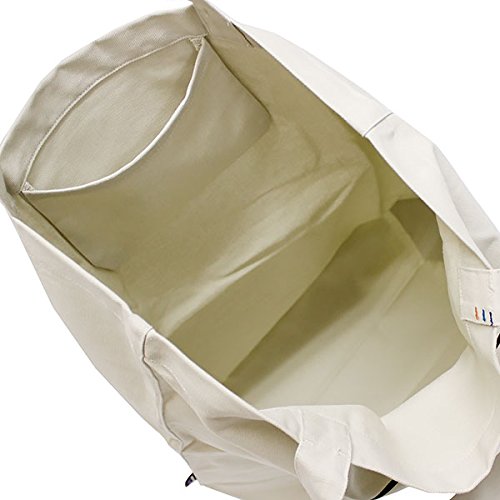 正面にはファスナー付きのポケットが付いていますので、よく使うコンパクトな小物類を入れておくのに便利です。サイドにもメッシュポケットがついていますので、ペットボトル飲料などを入れておくのに便利です。バックの内側部分にはミニポケットが付いているので、食材の鮮度を落とさないようにあらかじめ保冷剤などを仕込んでおくことも可能です。開口部には荷物が落ちないようにドローコード付きのフラップも設けられています。旅行用のサブバッグとしてもちょうどよく使える大きさです。