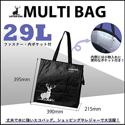 国内の人気アウトドアブランド・キャプテンスタッグのこちらの商品は、防水性に優れたポリプロピレン素材で作られたエコバッグになります。正面にはメーカーの雄ジカロゴやサイドにはメーカーの英文字も記されていておしゃれです。