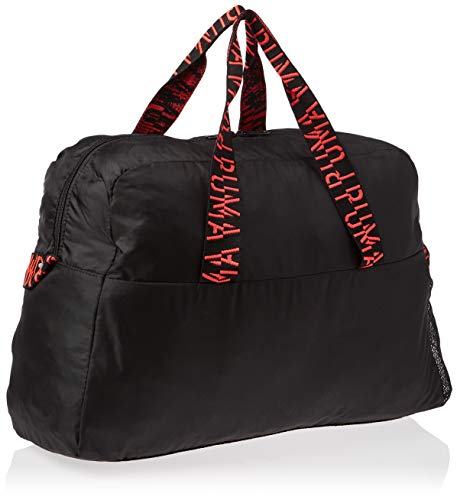 正面にはプーマのキャットのがついていておしゃれです。手の大きさに関係なく誰にでも持ちやすいハンドルがついている他にも、肩から斜めがけして持ち運びできるショルダーストラップも付いていて使いやすいです。カラーバリエーションも多いので、お好みの色から選んで使うことができます。サイドにはメッシュ仕様のポケットが付いていますので、汗を拭うためのタオルや水分補給用のドリンクを入れておくのにも便利です。