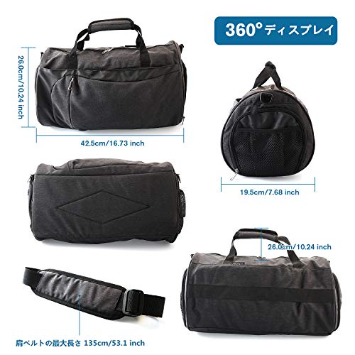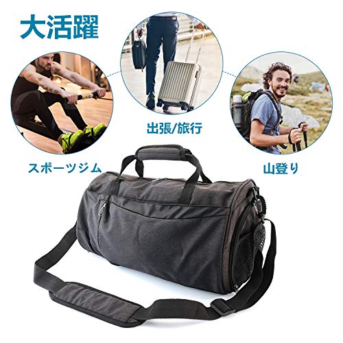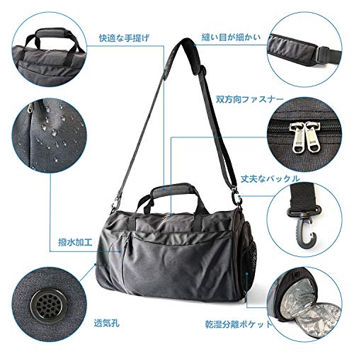 高品質なナイロン生地で作られているため、防水性や耐久性に優れている特徴があって雨の日も安心して持ち運び出来ます。バック側面には二つの通気孔が付いているシューズポケットが付いていますので、フィットネスジムで履く靴を入れておくのに使いやすいです。汗が付着しているスポーツウェアや乾いたウェアを分けて入れておける乾湿分離ポケットもあります。手持ちだけでなく、斜め掛けしてショルダーバッグのように持ち運びすることもできて便利です。