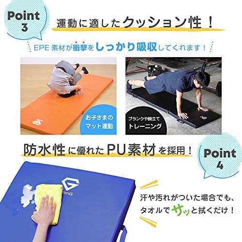 折りたたみタイプのトレーニングマットはロールタイプやジョイントタイプと比べると厚さがあるものが多く、柔らかい使い心地を求める人に最適。接地面が痛くなりがちな人や騒音が気になる人のトレーニングにおすすめします。GronGのトレーニングマットは自宅の一角をジムに変えてくれるようなトレーニングマットです。