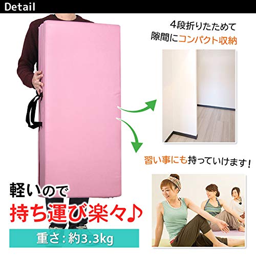 筋トレ、腹筋、膝をつく動きなどには丁度よい固さ、軽いジャンプやヨガには柔らかすぎる。でもマンションなので多少柔らかくてバランスが取りにくいときもあるが、下に響くより良いので満足している。ヨガにはヨガマットを別に使用している。横幅1メートルと言うのが色んな動きに対応出来て正解だった。又軽いので移動も楽、折り畳んだ時持ち手がついているのも使いやすい。今までヨガマットしかなかったので、自宅でトレーニングの幅が広がった。買って良かった。もう少し固いと満点!