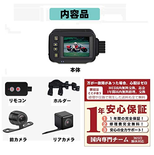 バイク用ドライブレコーダーでコスパ最強なのが二コマク。画質は綺麗とはいえませんし、WiFi接続やGPS情報の活用もできませんが、本体のボタンで簡単に操作できるのがおすすめポイント。初めてのバイク用ドライブレコーダーとしてや、毎日の移動手段として乗っている原付バイク用としておすすめです。価格は約7000円ですので導入しやすいですね。前後カメラや本体防水など、基本はしっかり押さえられています。