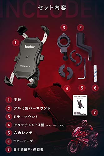 Plaisiureuxというブランドメーカーより販売されているこちらのバイク用スマホホルダーは、バイクのハンドルだけでなく、ミラーにも取り付けられる器具が付属されている商品です。コンパクトなサイズなので、ミラー周りはハンドル周りに取り付けても邪魔になりにくいです。