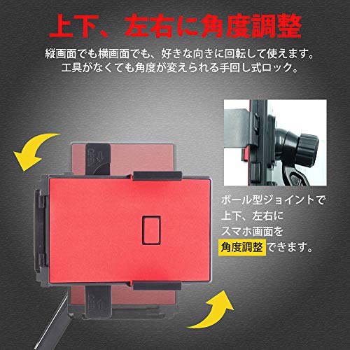 硬度に優れていてサビにも強いアルミニウムで作られていて、見た目は光沢があって高級感もあるスマホホルダーです。水平360°回転もできるので、スマートフォン画面を見やすいように自分好みにセッティングできます両側の広さはつまみを使って簡単に微調整でき、スマートフォンとの接触する部分にはゴムが使われているので、傷つけないように取り付けできます。