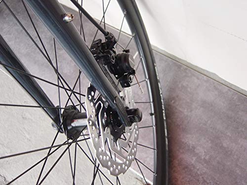 ディスクブレーキは車輪の中心部分のディスクを左右から押さえて、減速するという原理のブレーキです。車輪の中心部分に力が加わるため、より高い制動力があり、悪天候時でもほとんど制動力が変わりません。しかし、Vブレーキよりも重量が重いというデメリットがあるため、輪行などを行う際は注意が必要です。