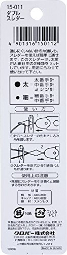 こちらの便利アイテムは見た目が特徴的ですが、口コミでの評価も高い便利アイテムです。一番の特徴は壊れにくいこと。普通のスレダーはひし形になっている針金の部分が壊れやすく、買い換える人もいますが、こちらは針金ではなくスチール製のフックになっているため頑丈で壊れにくいです。また両端の先端部分を使い分け、針穴にサイズを合わせることも可能。使い方は針穴にフックを入れて、フックに糸を引っかけて引き抜きます。