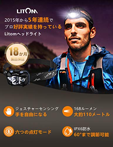 ランタンもコンパクトなものが多く自転車でも持ち運びやすいですが、ヘッドライトもおすすめです。ヘッドライトだと両手が塞がらず、自分の向いている方向を常に照らしてくれるため作業やトイレなどでテントから離れるときに便利ですよ。また、吊るして使うとランタンのようにも使えます。夜遅くに自転車に乗るときにも使えますよ。防水仕様で手をかざすだけでON、OFFできる便利機能がありおすすめです。