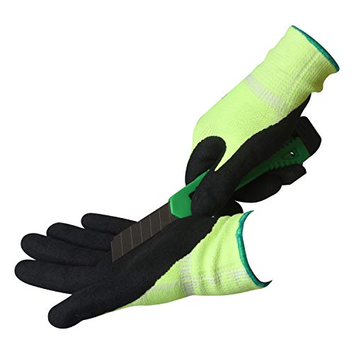 ステンレスワイヤーイドとアラミド繊維のケブラーを組み合わせた素材で作られている事により、耐切創レベル5を実現している商品になります。発泡樹脂コーティングを施していることによって、手のひら部分は透湿性に優れていて蒸れにくい特徴もあります。さらに柔らかく手にフィットしてくれるため、刃物を使った作業も行いやすいおすすめグローブです。手首周りの皮膚もガラスや刃物などから傷つけないように長めに設計されている特徴もあります。