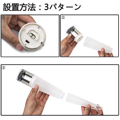 同じ置き型でもキャンドルランタン風で趣(おもむき)が違うタイプもありますよ。発光部分がろうそくのような質感になっているため雰囲気が異なり、LEDの発光パターンは炎のように優しく揺らいでくれますよ。一体型のソーラーライトのため上部に太陽電池があり明るい場所に置いておきましょう。曇りでしっかり充電できていない場合でも、単三電池でも使用できて使いやすいタイプとなっています。暖色で雰囲気抜群です。