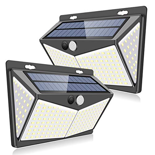 壁掛けタイプのセンサーライトで白色のLEDを200個異常搭載している明るく防犯や簡単な作業に向くタイプです。センサーモードが3種類あり夜になると常時点灯したり、動きがないときは暗めに常時点灯し動きを察知すると明るくなるモード、消灯状態から動きを察知すると明るくなるモードがあります。白色で強い光のため庭の雰囲気を演出するタイプではないので注意しましょう。正面だけではなく左右にもLEDがありワイドに照射してくれます。