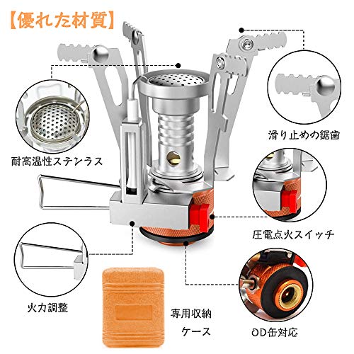 弱火・中火・強火と3段階の火力に自由に調整できるので、ソロキャンプなどで料理を作る時にも便利です。クッカーが調理中に転倒してしまわないようにしっかりと支えてくれる滑り止めのノコギリ歯の五徳を採用しています。