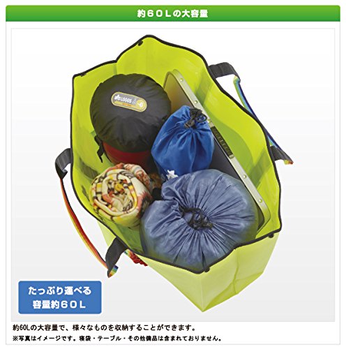 キャンプ道具をまとめて入れて置くのにぴったりな大型のアウトドア用トートバッグです。容量は60Lと大きめサイズになっているので、シュラフやタープ、テントなども入れられます。