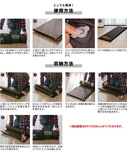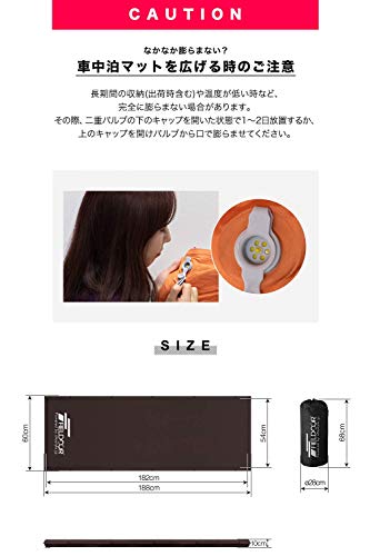 車中泊用のマットですが、キャンプ用のマットとしても使いやすい自動膨張式のインフレータブルマットです。サイズはS~Lまであり一番小さいSでもキャンプ用のパーソナルマットとしては標準からやや小さめの60×188cmがあります。60cmは狭いと思う方もいるかもしれませんね。実は60cmのタイプは厚みが10cmもあり保温性が高く、地面の凹凸を感じにくいです。