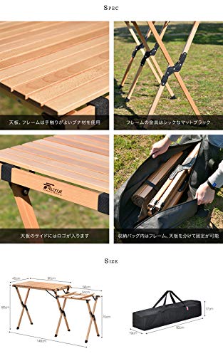 口コミでも非常に評価が高い製品です。ドイツ産の木材でできているおしゃれかつコスパの高いテーブルとして非常に人気があります。収納サイズは92×19×17cmになり収納袋もきちんと付属しますよ。金具にはアルミが使われていて少しでも軽量になるように作られていますが、木がメインとなるため重さは9kgと少し重たいです。