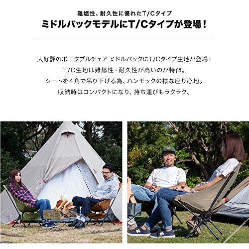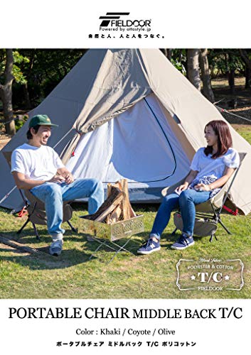 フィールドア以外のメーカーからも多数発売されているポータブルチェアですが、フィールドアではT/C素材版があります。火の粉に強い素材のため焚き火チェアとして使えますよ。また、オプションで張替え用の座面だけも販売されていて汚れたり破れたりしても座面だけ交換できたり、ロッキングチェアになるパーツがオプションで販売されていて他のポータブルチェアより使い勝手がいい魅力があります。