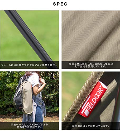 本タープはポールセットなどさまざまなバリエーションがありポールを持っていない方でもタープがすぐに張れるようになっています。また、フィールドアらしい低価格ですが有名ブランド、人気メーカーと同じ比率でコットンが使われていて、生地がしっかりしていて火の粉で穴が開かないと非常に好評です。
