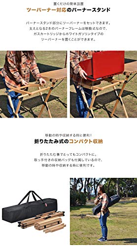 グリル台、テーブル共に耐荷重は30kgとなり非常に使いやすく、サイドテーブル付きモデルはより使い勝手が増しています。ロールテーブルタイプとなり収納時はコンパクトなりますよ。組み立ては足を広げて天板をセットするだけで非常に簡単です。