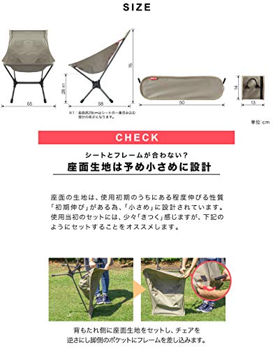 コンパクトチェアのため軽くて持ち運びやすいと評価が高いです。座面の張り加減もよく座り心地もいいと評判になっています。