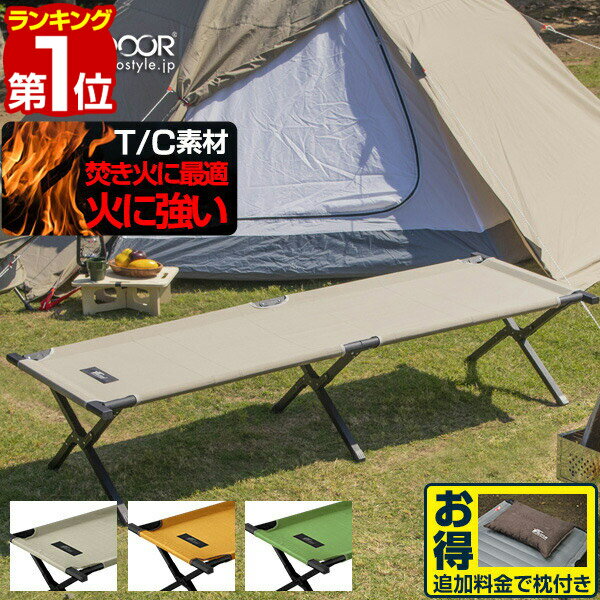 コットは耐荷重が重要になります。フィールドアのコットは180kgと耐荷重が高めで生地も丈夫なT/C素材ということでベンチとしても使えるほど強度が高いですよ。体格のいい方が実際に使っても丈夫だったという口コミがあり信頼性が高いです。焚き火の近くでも使えるところも評価されていて低価格で高性能なフィールドアらしさが光るアイテムです。