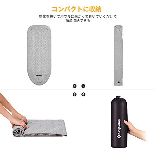 KingCamp アウトドアマットはキャンプや車中泊を目的として作られていますが、1kg以下軽量さ、ザックにも収納しやすいコンパクトさにおさまります。空気入れか口を使って膨らませるのが少し大変だと言う口コミもありましたが、クッション性の高さを評価する声も多く、寝心地を求める人におすすめ。