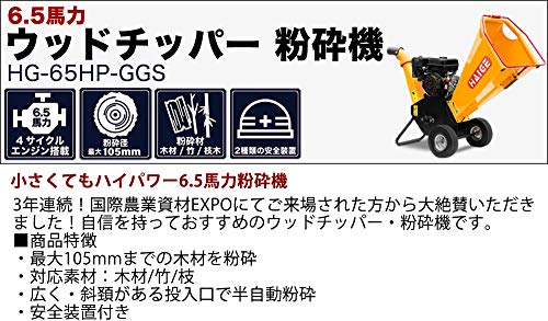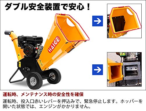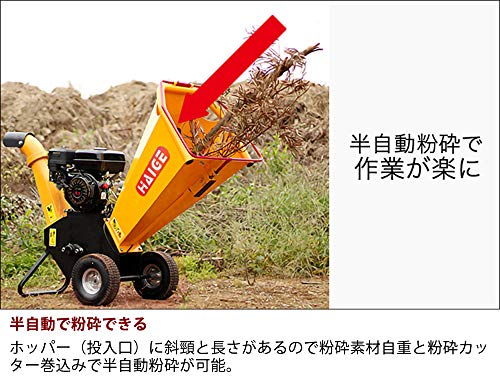 HAIGEというブランドメーカーより販売されているエンジン式ウッドチッパーは、小型サイズでありながらも、最大10.5cmまでの直径の枝を細かく粉砕することが可能なハイパワーガーデンシュレッダーです。