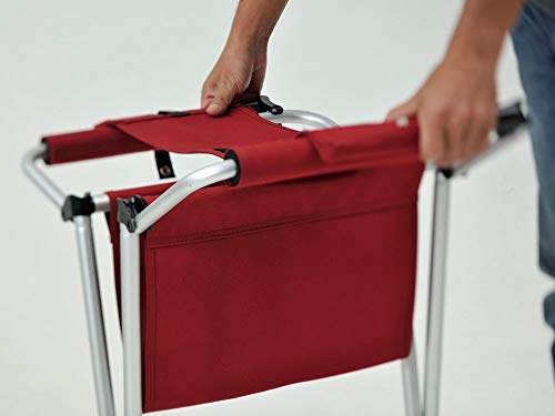 シート面には丈夫で多少の防水性も備わっているポリエステル帆布を採用しています。使っていない時はアルミ合金の脚部をコンパクトなサイズに折りたたみでき、全体の重量自体の2kgと軽量なので持ち運びも簡単なベンチです。