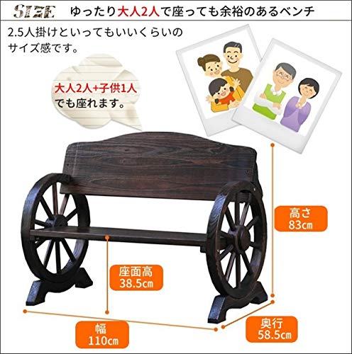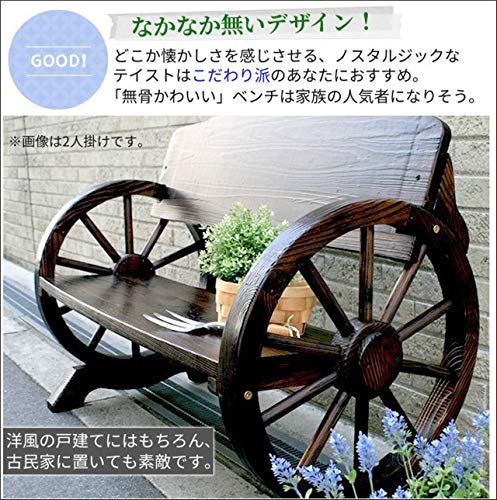 座面の横に車輪がつき、木製の車のような印象のガーデンベンチです。天然の松で作られ、表面には焼加工とラッカー塗装が施されています。庭やベランダといった屋外で使用するほか、そのかわいらしいデザインから子ども部屋やリビングなどに飾って使ってらっしゃる方もいるのだとか。ひとり掛けタイプやふたり掛けタイプもラインナップされています。