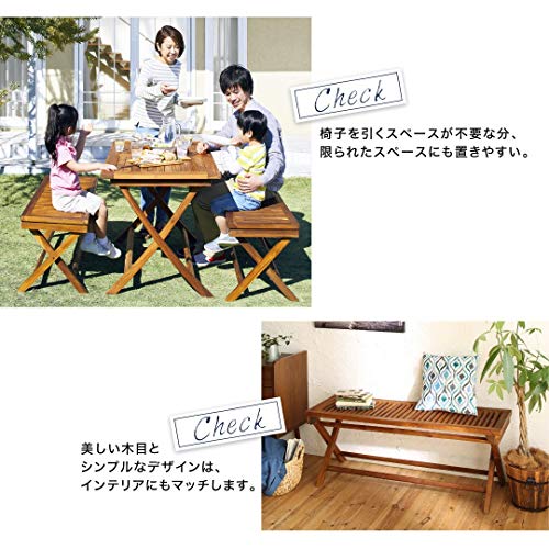 腐りにくく水に強いチーク材を使用し、コンパクトに折りたたんで収納できる便利なガーデンベンチがこちらです。庭やウッドデッキ、テラスやベランダなどで、必要に応じて使うことが可能なため、あまり広いスペースがなくても使うのに不便を感じません。ベンチの幅は120cmとゆったりと使える上、屋外だけではなく、室内のインテリアとしてもおしゃれです。テーブルやチェアのラインナップもあるため、使いたい人数やライフスタイルに合わせて購入することが可能です。