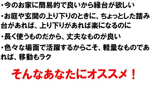庭やベランダなどに置くガーデンベンチとしてだけではなく、サイズの異なるタイプのふたつを組み合わせることで、庭に出る際の踏み台やステップ台としても活用することができます。アルミ製なので雨に強く、錆びにも強いうえ、軽量でうれしいです。玄関や庭に出る際の上り下りで、ちょっとした踏み台がほしいという方、腰をかけるベンチも合わせてほしいという方に、ぜひおすすめのガーデンベンチです。