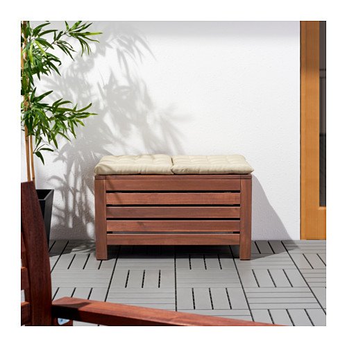 ガーデニングで必要な道具などを収納できる屋外用のガーデンベンチです。人気のIKEAの製品で、繊維密度が高く、耐久性にすぐれたアカシア材が使用されています。表面保護のため、ウッドステインが施されたタイプで、必要に応じて塗りなおしていくことで、長期にわたって使用することが可能です。シンプルでナチュラルでおしゃれな雰囲気は、日本製のガーデンベンチとは趣を異にしています。