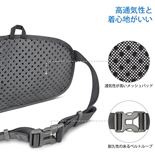 防水仕様で軽量なナイロン生地で作られていて、腰回りに接触する部分の生地が通気性がよいため、蒸れずに長時間快適い身につけられます。