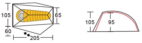 軽い構造に軽い種類のテントのため2人用の210×120cmの広さがあり、小さい前室付きで重量はわずか990gです。1kgを切る非常に軽量なテントで収納サイズもポールが少ないため本体6×17×25cm、ポール39cmになります。丸く収納するものが多い中、本品は四角いためパッキングしやすいですよ。