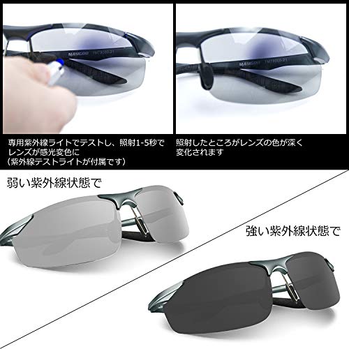こちらの変色調光サングラスは、メンズとレディースが兼用で使用できるユニセックスタイプのサングラスで、周辺の明るさによってレンズの色が変わる調光レンズを装備しているアウトドアサングラスです。