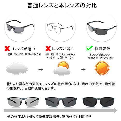 屋外では色が薄いレンズから濃いレンズに変化して、室内では色が濃いレンズから薄いレンズへと変化するようになっていますので、都度、状況に合わせて適切なレンズカラーで快適に身につけられるアウトドアサングラスです。