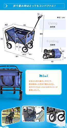 小回りの利くスムーズな車輪を採用している特徴もありますので、狭い道を行き来する事も簡単にできるキャリーワゴンです。使った後にはコンパクトにできて、専用のカバーで覆う事ができます。カラーバリエーションも豊富なおしゃれワゴンで、お値段も安いので口コミでも評判良い商品です。