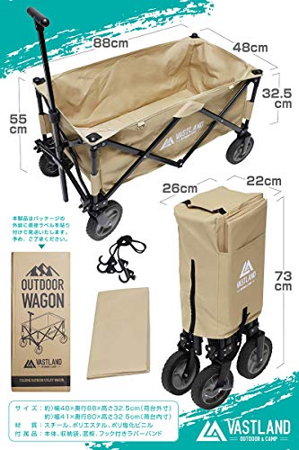 兵庫生まれの人気アウトドア用品ブランド・ヴァストランドのお手頃な値段で購入できる安いアウトドア用ワゴンで、耐荷重は150kgまでの耐久性に優れているカートになりますので、BBQやキャンプで使用する荷物もたっぷりと入れてスムーズに移動できます。