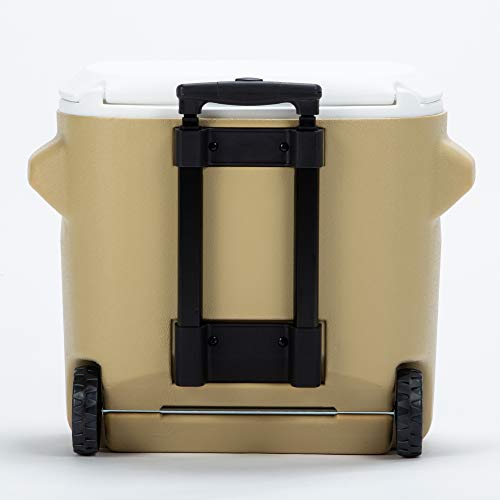 定番アウトドアブランド・コールマンのクーラーボックス・ホイールクーラー28QTは、誰にでも楽々と移動させられる伸縮式キャリーハンドルが付いている人気クーラーボックスです。