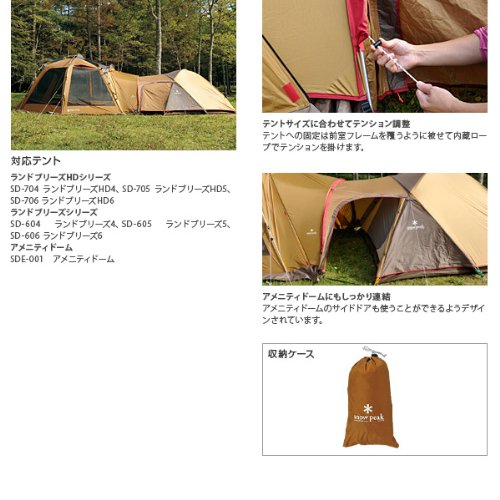 この新型・旧型のテントを連結するときに使えるのが、メッシュシェルタートンネルという特殊なオプションです。これはsnow peakから登場している、中型テントなどに連結できる、タープとは違ったトンネルのようなアイテム。