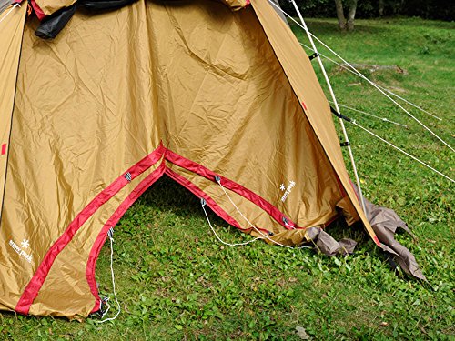 完全にタープのような形状に変形して使うのもおすすめ。テントの内外を出入りしながら、タープ構造で比較的に雨や日差しを避けて過ごしやすくなります。冬は窓を全部を締め切り、内部のストーブの熱を逃さない使い方もできます。