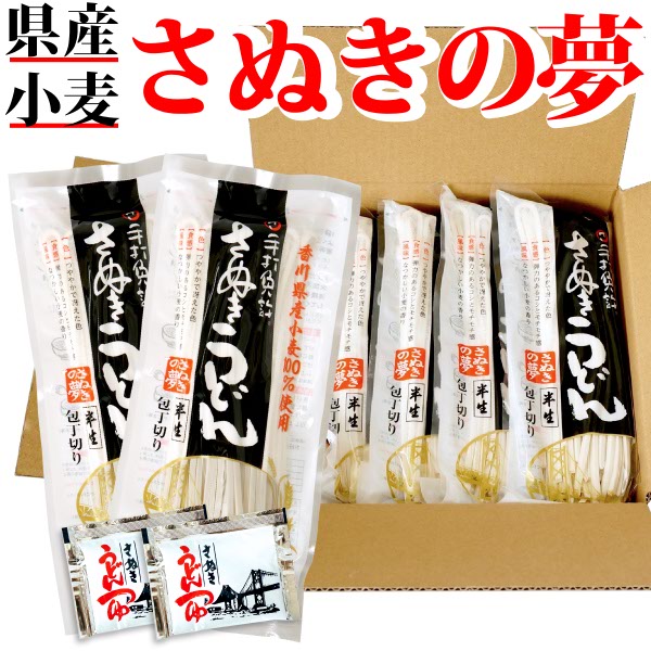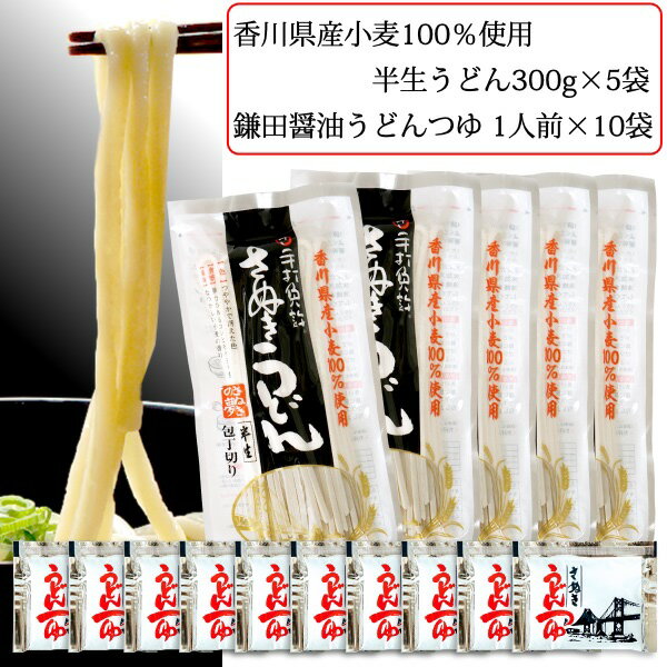商品内容:香川県産小麦(さぬきの夢)100%使用 半生うどん麺300g×5袋(約10~15食分) / 鎌田醤油・讃岐うどんつゆ 20ml(1人前)×10袋
