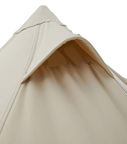 こちらのワンポールテントですが、人数は3~4人程度に利用できるタイプです。アルミポールが使われており、重さは3kgと軽いほうです。フライシート、インナーテントがついており、換気のできるベンチレーションもあります。
