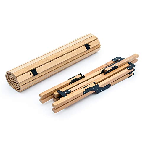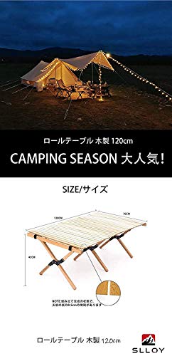 初めにご紹介するのは、こちらの木製ロールテーブルです。ウッド調のおしゃれなテーブルで、天板はロールしてコンパクトにしまえるようになったタイプ。キャンプのギアは折りたためたりコンパクトにできるというものが重宝されるので、その点でもおすすめな商品です。また、付属で収納バッグもついているので、改めて入れる袋を購入しなくてもOKです。