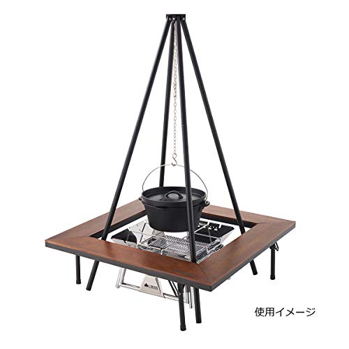 焚き火台へダッチオーブンを直置きしても調理できますが、LOGOSクワトロポッドがあればよりアウトドア感を演出できます。実用性も備えており、ゴトクでは支えきれない重量のダッチオーブンも安心して吊り下げられる安心の耐荷重200kg。