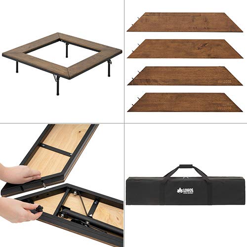 焚き火はロースタイルが定番。そんなキャンパーへおすすめしたいのがLOGOS 囲炉裏テーブルセットです。焚き火を囲んでBBQする際には真ん中を開けて焚き火台を設置すると囲炉裏スタイルが完成します。