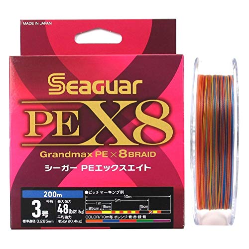 ナイロン性と聞くと伸びるイメージがありますが、「シーガー PEX8」は伸びを少なくし、8本組みのラインを採用した事で大物まで狙える釣り糸となっており、強度は0.4号で7.4lb〜6号で82lb、長さは150〜400m、カラーはオレンジ・青・赤・緑・紫をラインナップしています。