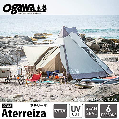 こちらは老舗ブランドの小川が扱うティピーテントになります。幅410㎝・奥行375㎝で高さは260cmと6人ほどでキャンプを楽しめる大型テントです。ポールに2股になったY型ポールを採用しているので天井がより広くなっているのも特徴です。